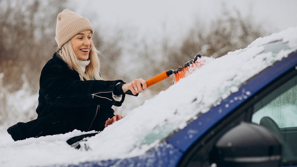 Snow removal: Use a soft-bristled brush to remove snow, starting from the roof and working down. Don’t forget to clear the lights and mirrors for optimal visibility.