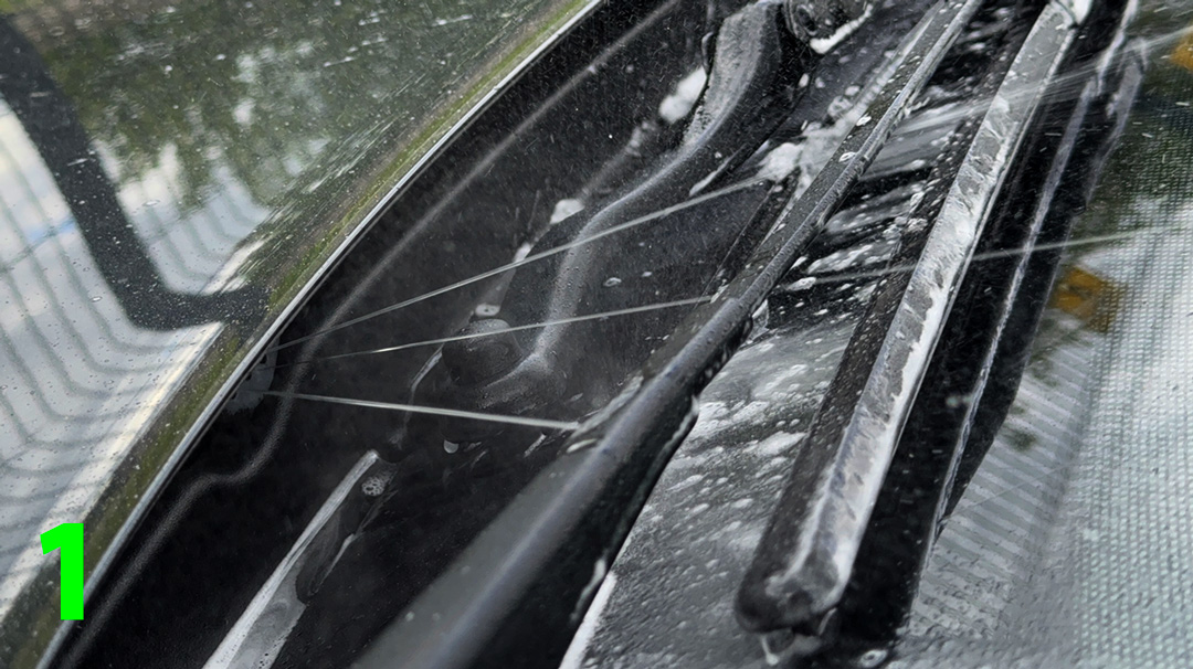 Step 2: Initial assessment (stationary) With the car parked, have your assistant activate the washers. Observe where the fluid hits the windshield. Note if it’s too high, too low, or off to one side. Remember, the goal is for the fluid to land where your OXIMO wipers can efficiently distribute it and clear the dirt.