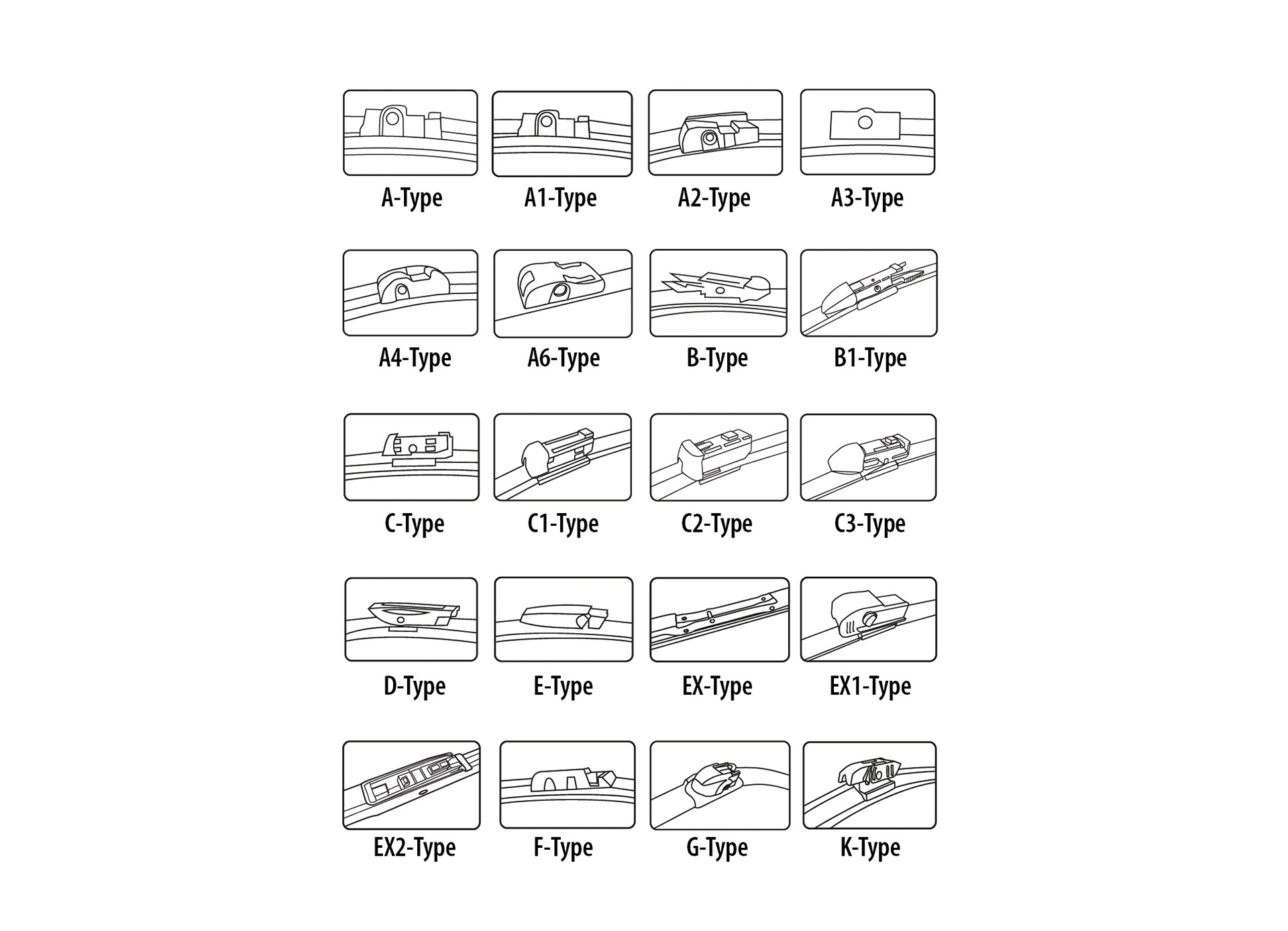Wiper blade mounts vary depending on your vehicle’s make and model, as well as the specific wiper arm design. Below, we’ve outlined the various types of wiper blade attachments to help you identify the correct fitting for your car.