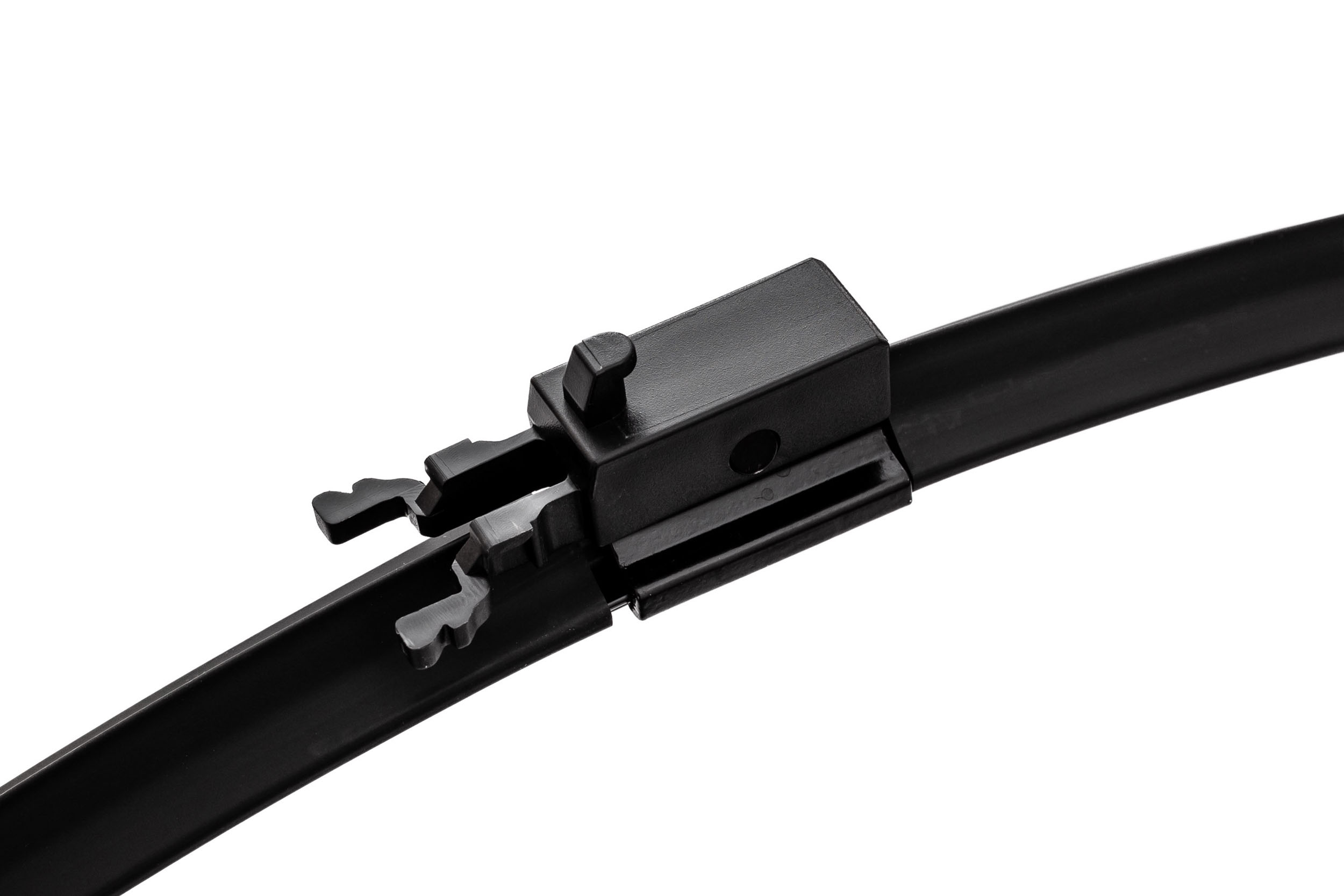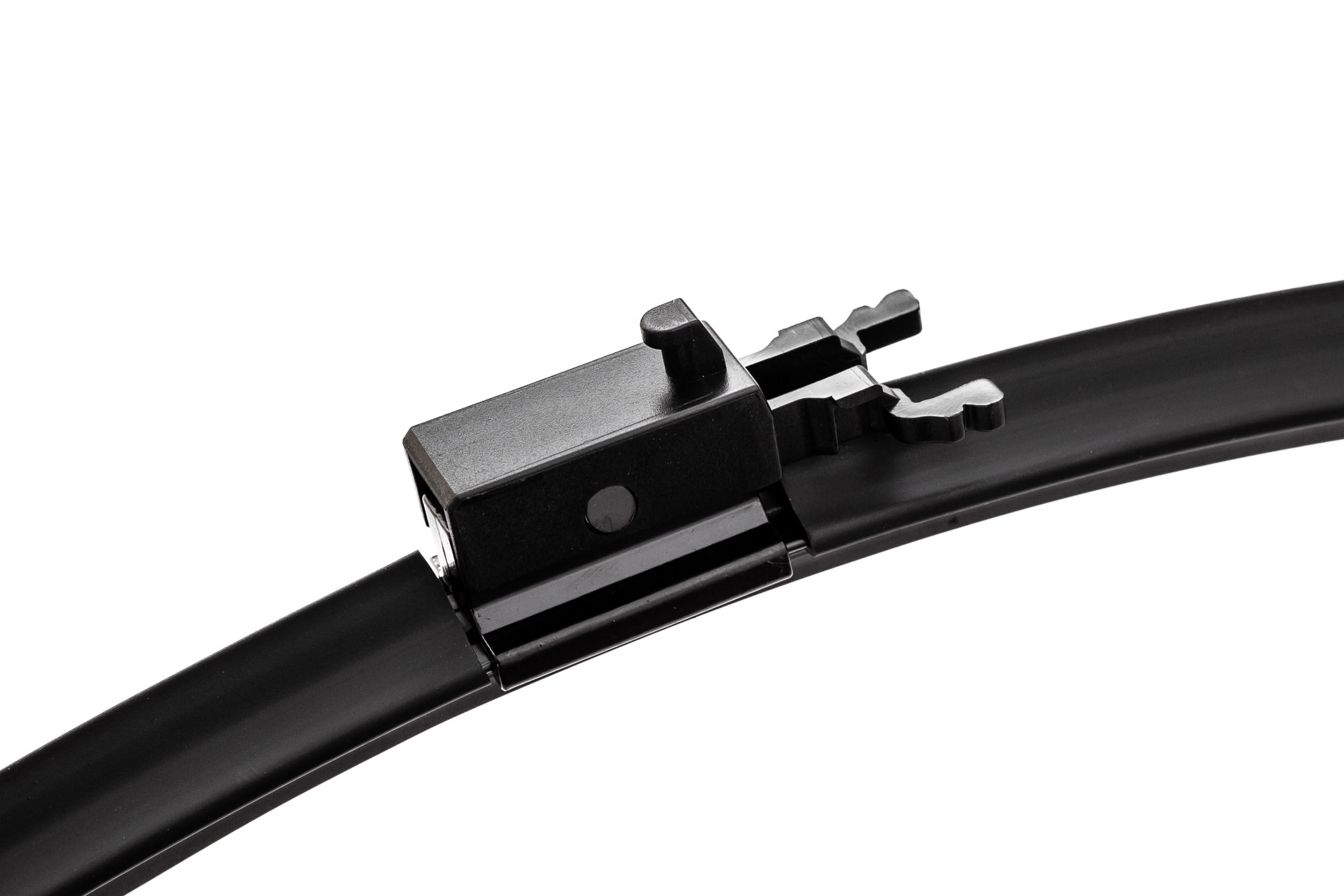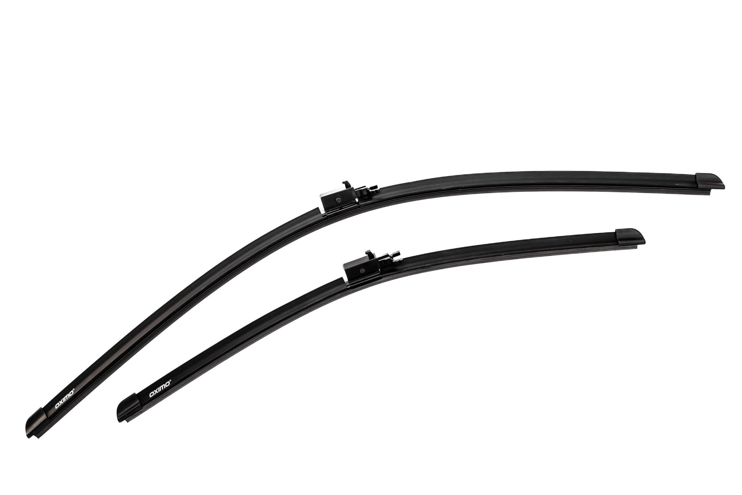 Komplet wycieraczek (2 szt.) na przednią szybę. Długość wycieraczki: 650 mm po stronie kierowcy i 475 mm po stronie pasażera. Posiadają dedykowane mocowanie pasujące do konkretnego modelu i rocznika samochodu, co znacznie ułatwia ich montaż. Wycieraczki o konstrukcji bezszkieletowej ze zintegrowanym spojlerem. Pióro wycieraczki wykonane jest z wysokogatunkowej gumy syntetycznej z powłoką PTFE (teflon), która zapewnia skuteczne odprowadzanie wody i cichą pracę. Elementy metalowe wykonane są ze stali wysokowęglowej z elektroforetyczną powłoką antykorozyjną zapewniającą pełną ochronę przed rdzą.